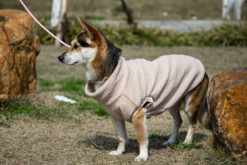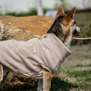 This Bouclé dog coat is made of soft and warm Bouclé fabric for maximum comfort. The two-way zipper on the back allows flexible adjustment of the opening size, making it easy to attach a leash or accommodate bathroom breaks. Next to the zipper, there is a convenient side pocket to hold treats, keys, or waste bags—perfect for hands-free walks. The nylon inner lining is smooth and resists pet hair, ensuring easy on/off. The front sleeves and chest area feature stretch rib-knit design that fits your dog’s body closely while allowing full range of motion.
