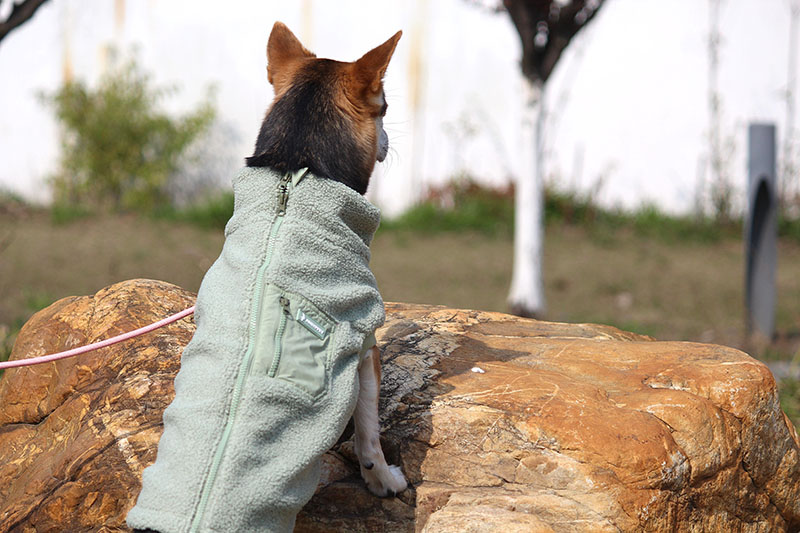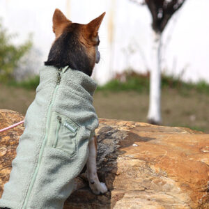 This Bouclé dog coat is made of soft and warm Bouclé fabric for maximum comfort. The two-way zipper on the back allows flexible adjustment of the opening size, making it easy to attach a leash or accommodate bathroom breaks. Next to the zipper, there is a convenient side pocket to hold treats, keys, or waste bags—perfect for hands-free walks. The nylon inner lining is smooth and resists pet hair, ensuring easy on/off. The front sleeves and chest area feature stretch rib-knit design that fits your dog’s body closely while allowing full range of motion.